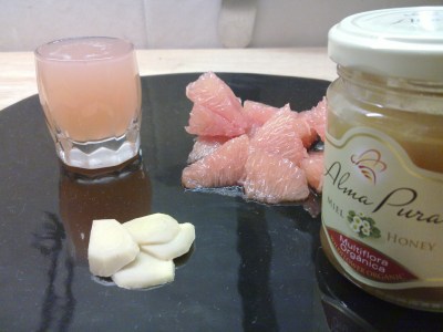 Almíbar de miel, pomelo y jengibre.