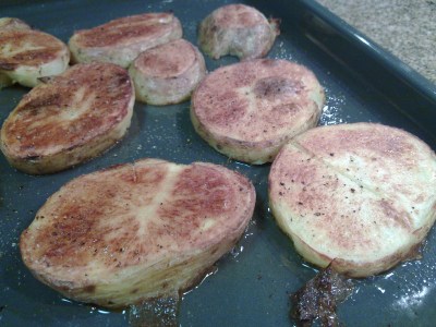 4. Se las dispone en un aplaca para honro y se las cocina por espacio de 30 minutos. Se las gira en la mitad.
