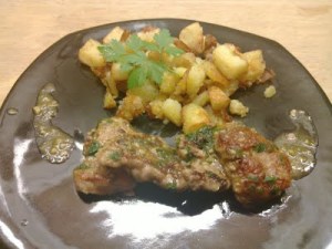 Es una combinación casi perfecta. El matambrito tiene sus toques dulces, por la salsa barbacoa. La tortilla tiene carácter. Y el tomillo, aparece de fondo… música para el paladar.